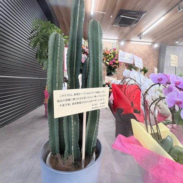 オープンにあたり、たくさんのお取引先様やお客様から、お祝いのお花やお言葉をいただきました。